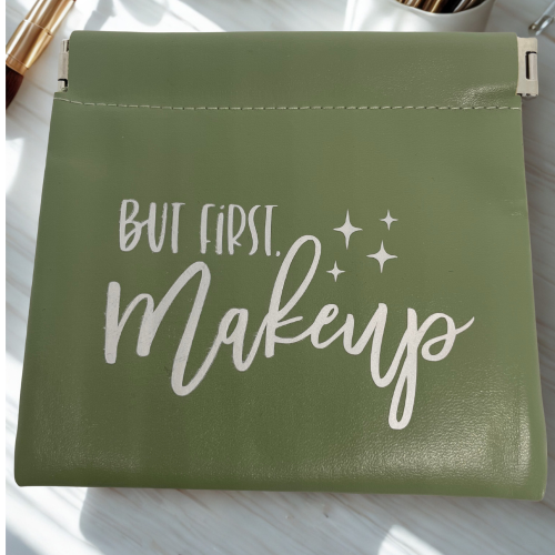 Experience the ultimate blend of sophistication and eco-conscious luxury with our Green Vegan Leather Makeup Bag.