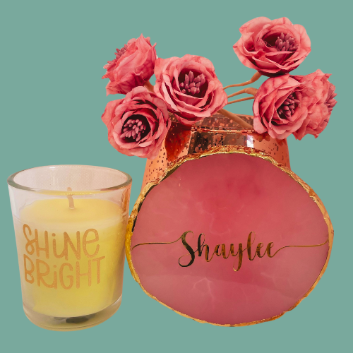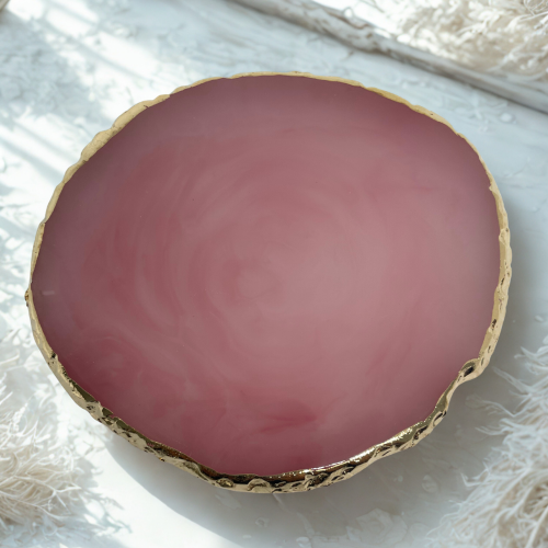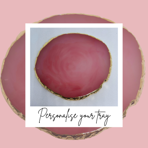 Elevate your jewellery organisation with our stunning Pink Resin Jewellery Tray, designed for those who love elegance with a personal touch. This handcrafted piece features a vibrant pink hue, beautifully complemented by a gold-trimmed edge, adding a luxurious feel to your vanity or bedside table.