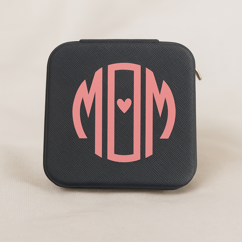 Black Vegan Leather Jewellery Box – “Mom” Personalised Keepsake | Pretty Tinks