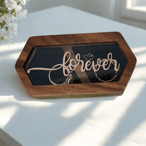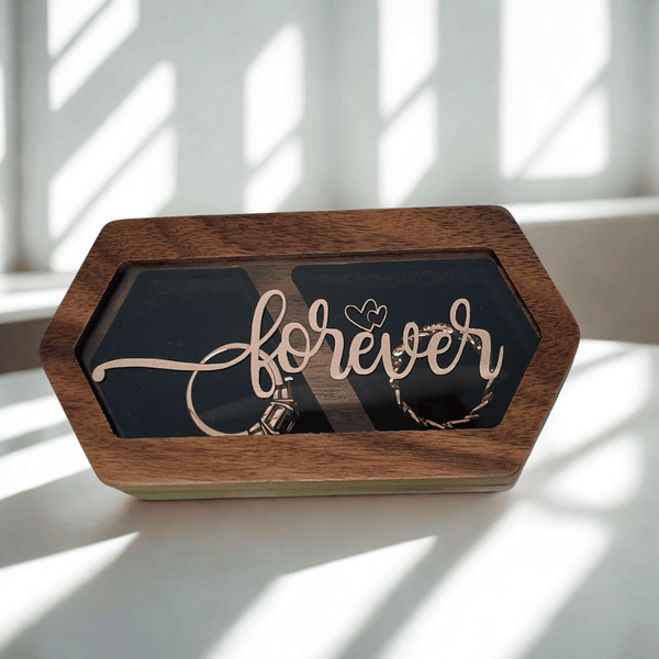 Celebrate love with the Forever Bespoke Wooden Ring Box—a beautiful way to hold and cherish your most treasured rings!