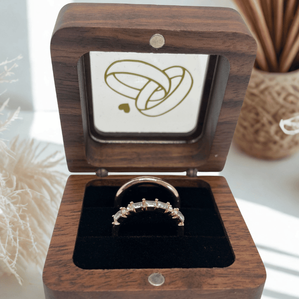 Lined with luxurious velvet, it cradles your ring with care, offering both protection and an air of mystery as you prepare to pop the big question. Personalise it with your own heartfelt message to add a poetic and meaningful touch, making your proposal or wedding day even more special.