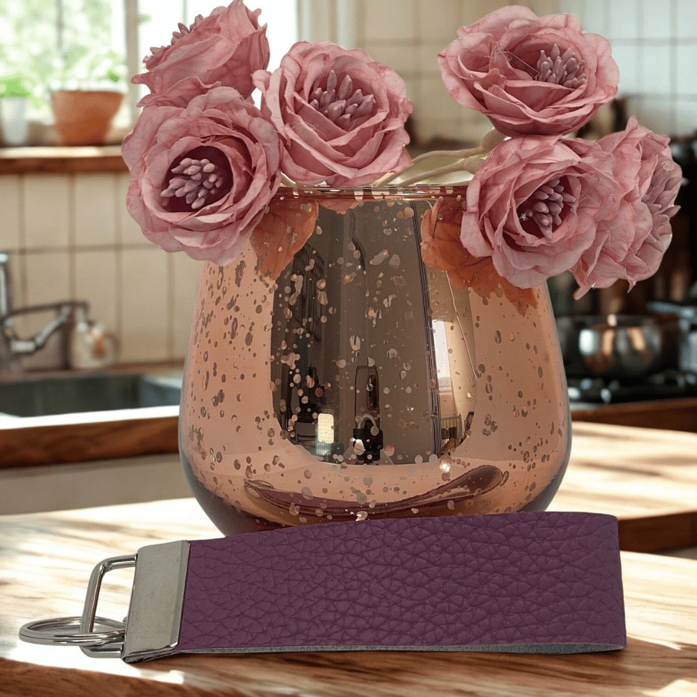 #KeyFob #StylishKeychain #VeganLeatherKeyring #PurpleKeyFob #DurableKeyHolder